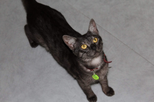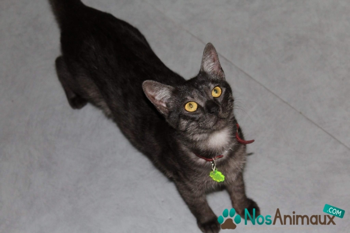 Description :J'habite au 2ème étage d'un immeuble, elle a du tomber. Elle est craintive, possède un collier rouge (si elle ne l'a pas perdu) avec une boule bleu accrochée dans laquelle il y a mon nom,mon numéro et mon adresse.