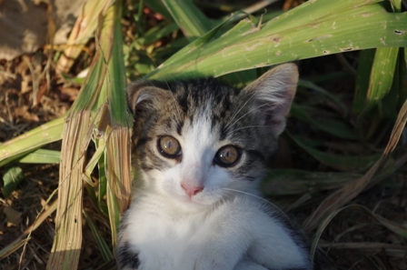 Description :dessus tête, dos et hauts des pâtes gris tigré et le reste blanc un orteil rose à la patte arrière gauche