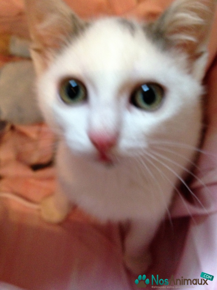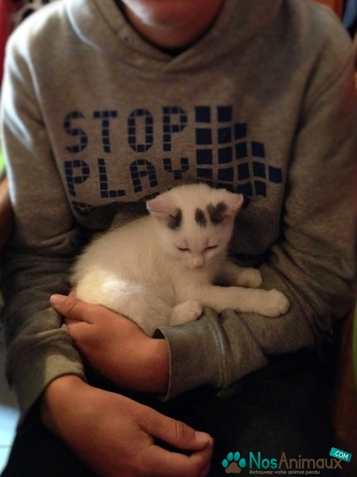 Description :Bonjour, je poste cette annonce suite à la disparition de notre petit chat. Il s'appelle Kamicasi, il a 1an et demi. Depuis le 2 novembre, ce petit bout reste introuvable. Si jamais vous avez l'occasion de le retrouver merci de nous contacter très vite car il nous manque et malgré nos recherches, il reste introuvable. Kamicasi est un petit chat blanc avec deux petites taches grises aux oreilles et sa queue est grise aussi. Il a des petites tâches grises derrières ses petites pattes. Il a les yeux verts et lorsqu'il a disparu, il porté un petit collier vert anti-puce. S'il vous plait si jamais vous le trouver sachez qu'il a déjà une famille, qui s'inquiète pour lui et je suis sûr qu'il aimerait rentrer à sa maison et retrouver son tipis et son petit doudou lapin ... Nous l’avons nourris quasiment dès sa naissance suite à l’abandon de sa mère alors nous sommes sa famille pour lui …