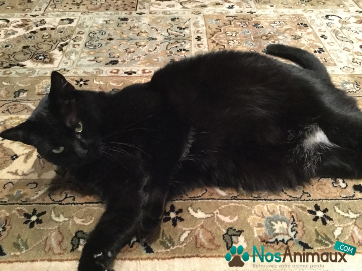 Couleur :NOIR avec des tâches blanches sur le cou et ventre