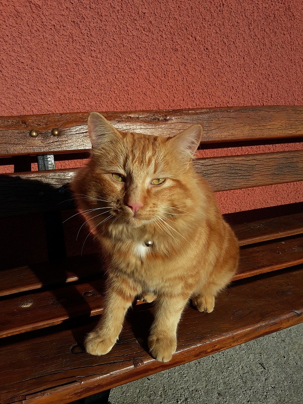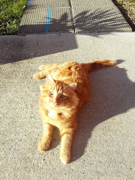 Description :Jeune chat Roux à poil long possédant un collier rouge avec une clochette très affectueux et câlin. Trouvé à Saint Anatoly commune de Lanta (près de Toulouse).