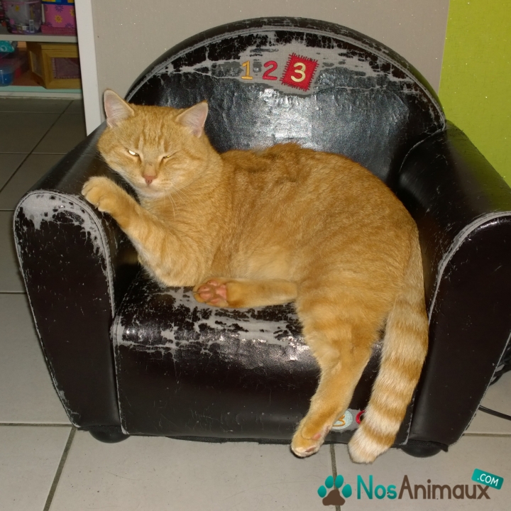 Description :Chat mâle tigré roux et blanc 5 ans